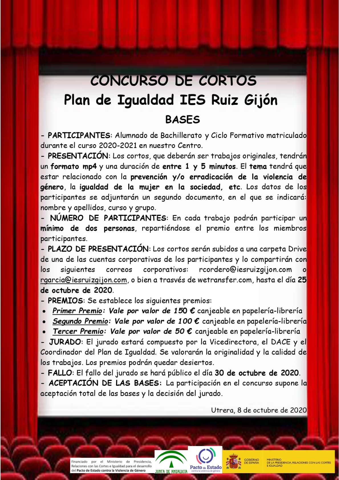 Los alumnos y alumnas del IES Ruiz Gijón que han obtenido Matrícula de Honor el curso 2019/20 son los siguientes: